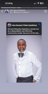 Overall, Samuel Olayinka Oyedotun represents a rare blend of character, competence, and capacity. His integrity, community service, business success, and proven growth mindset make him a leader who can be trusted, supported, and confidently aligned with for meaningful and lasting community development.